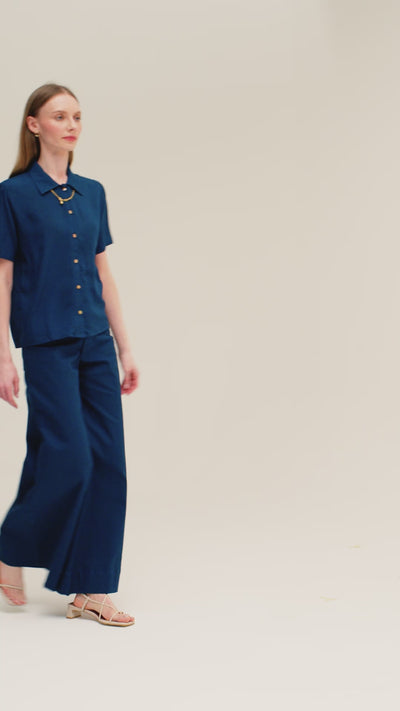 Ines is an everyday essential with mother-of-pearl buttons, delicate seams that gather in the back and at the shoulders, and a classic, straight point collar that defines its clean look.